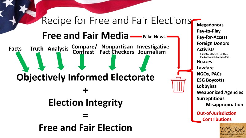 If you want Free and Fair Elections, setting the direction of We The People, contact your local, city, county, state and federal elected officials as well as the President and demand that we quit playing around with a broken election system. Take action NOW to fix it before the next General Election in 2028 - an election that we want to be able to trust:Earn trust in the election system